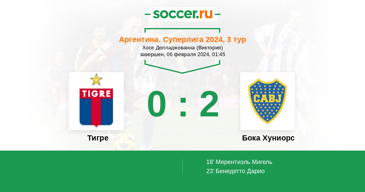 23' (0:2) Бенедетто Дарио (9) (Мерентиэль Мигель (16))