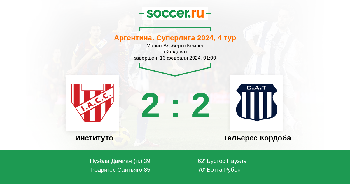 62' (1:1) Бустос Науэль (10)