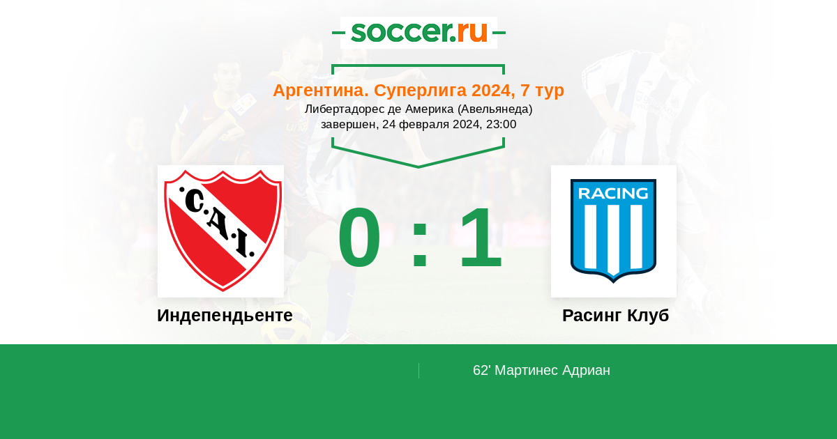 Протокол матча Индепендьенте против Расинг Клуб