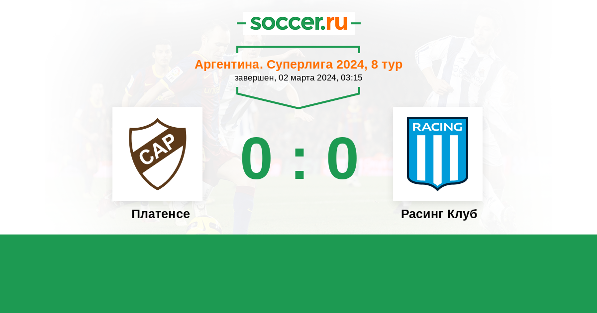 Протокол матча Платенсе против Расинг Клуб