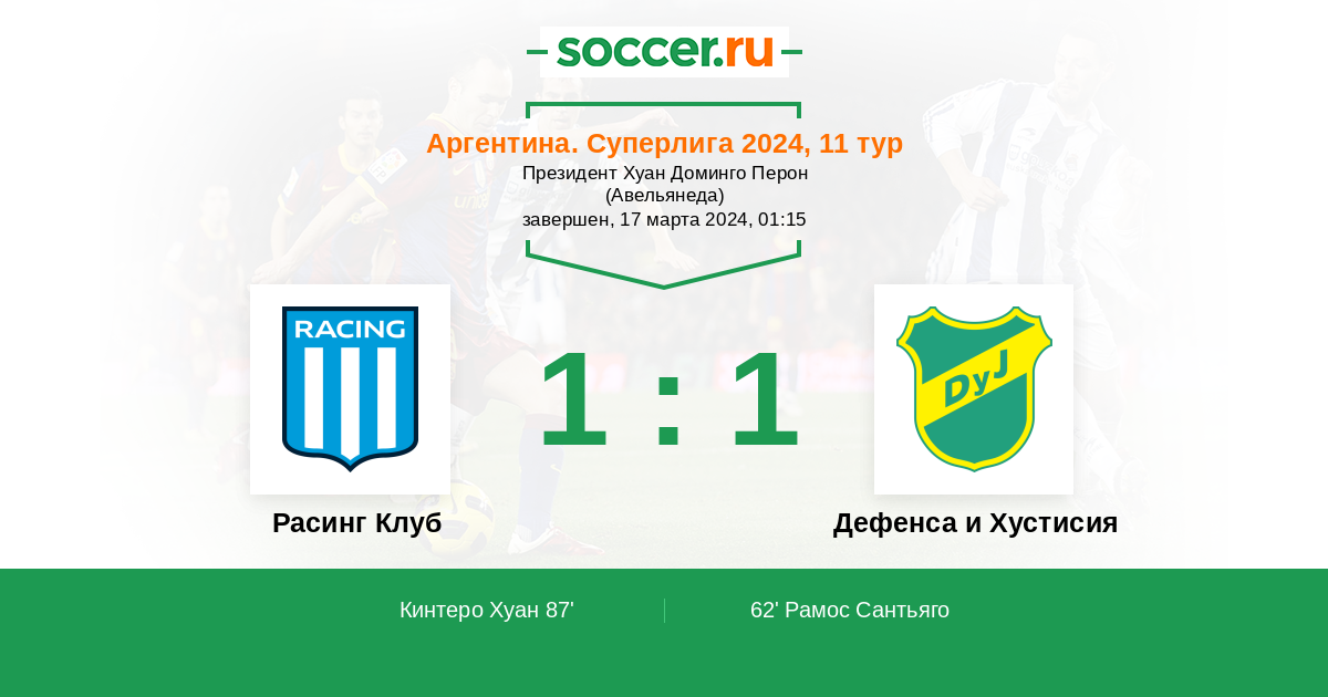 Протокол матча Расинг Клуб против Дефенса и Хустисия