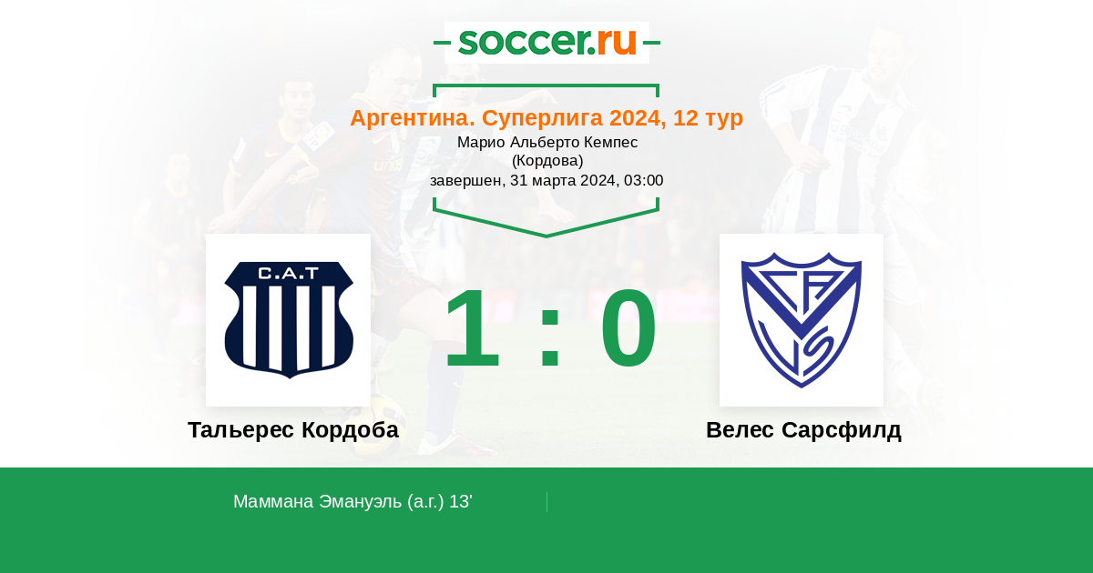 Протокол матча Тальерес Кордоба против Велес Сарсфилд