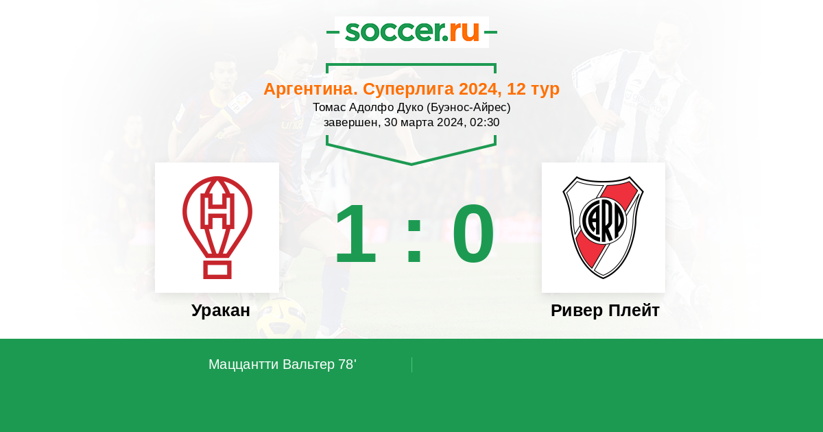 Протокол матча Уракан против Ривер Плейт