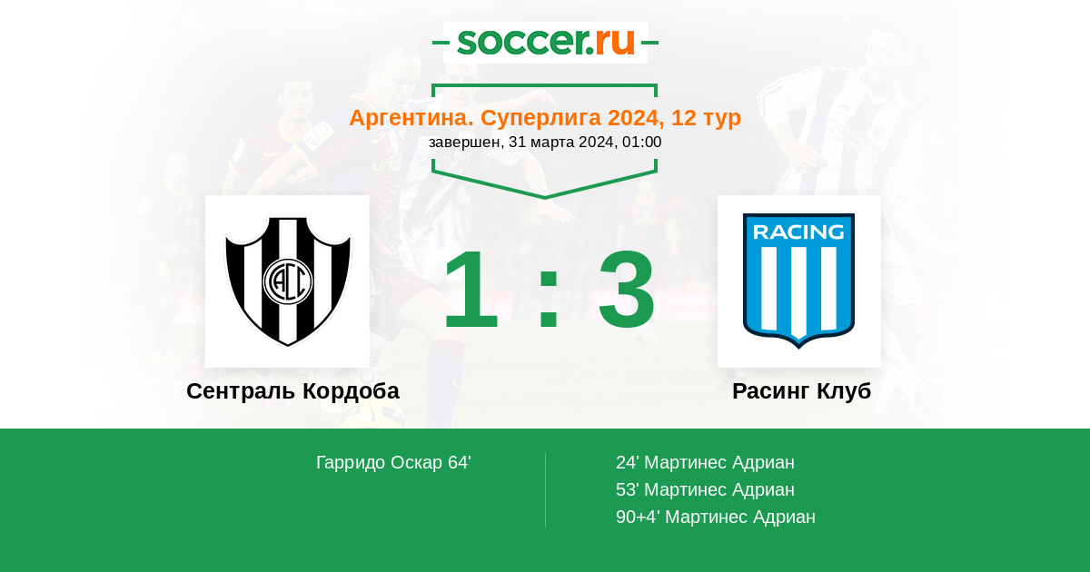 Гол90+4' (1:3) Мартинес Адриан (9) (Миранда Леонель Ариель (19))
