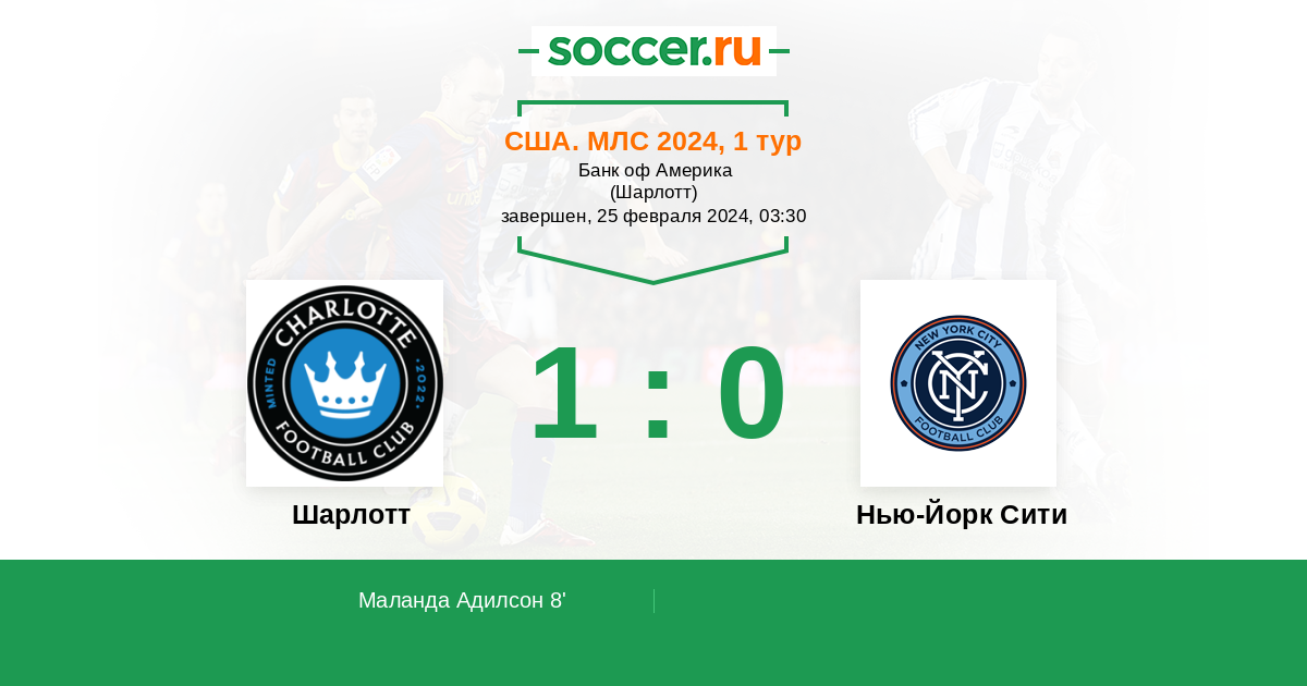 Протокол матча Шарлотт против Нью-Йорк Сити
