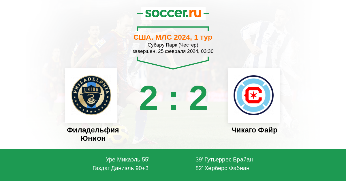 Протокол матча Филадельфия Юнион против Чикаго Файр