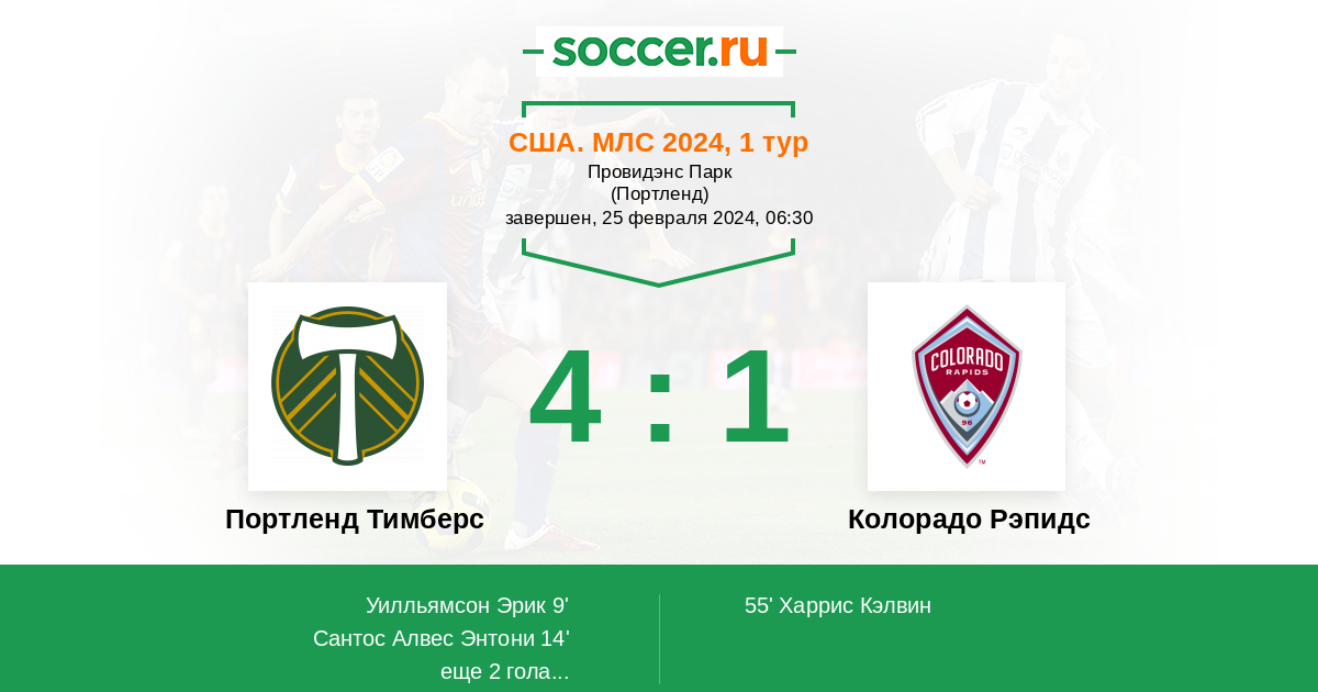 Протокол матча Портленд Тимберс против Колорадо Рэпидс