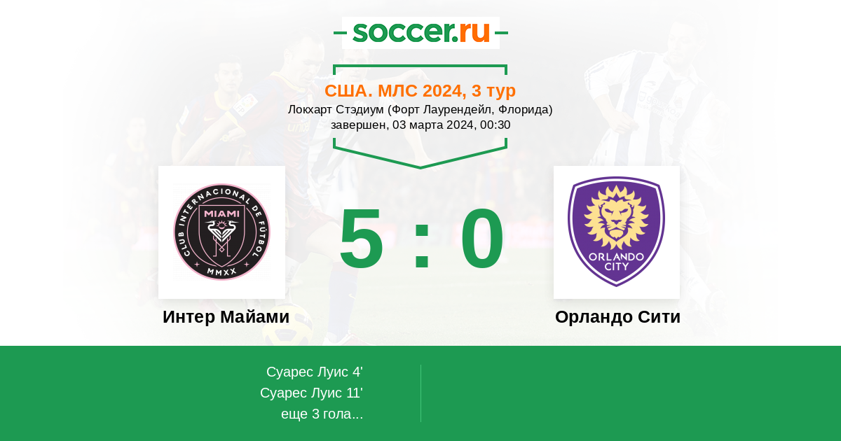 Протокол матча Интер Майами против Орландо Сити