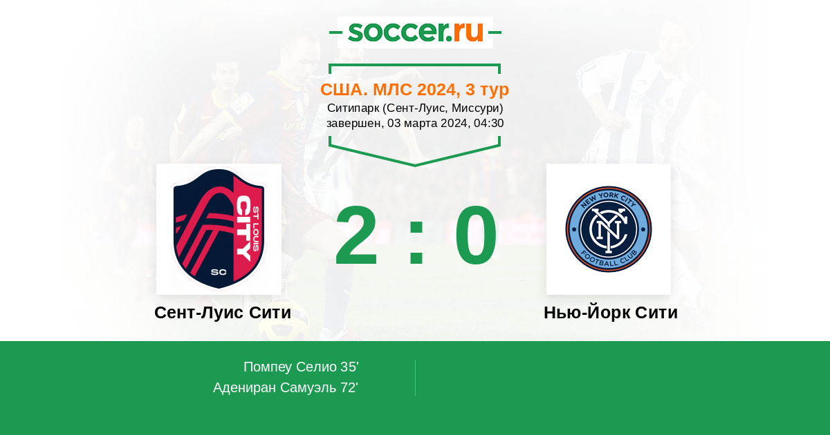 Протокол матча Сент-Луис Сити против Нью-Йорк Сити