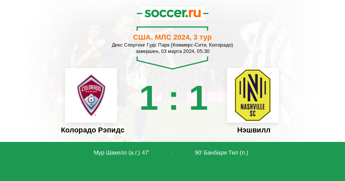 Протокол матча Колорадо Рэпидс против Нэшвилл