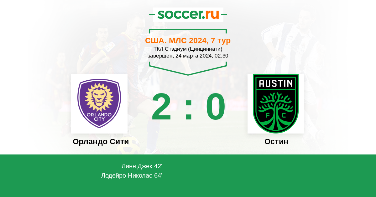 Протокол матча Орландо Сити против Остин