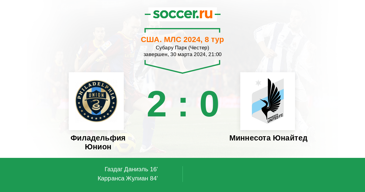Протокол матча Филадельфия Юнион против Миннесота Юнайтед