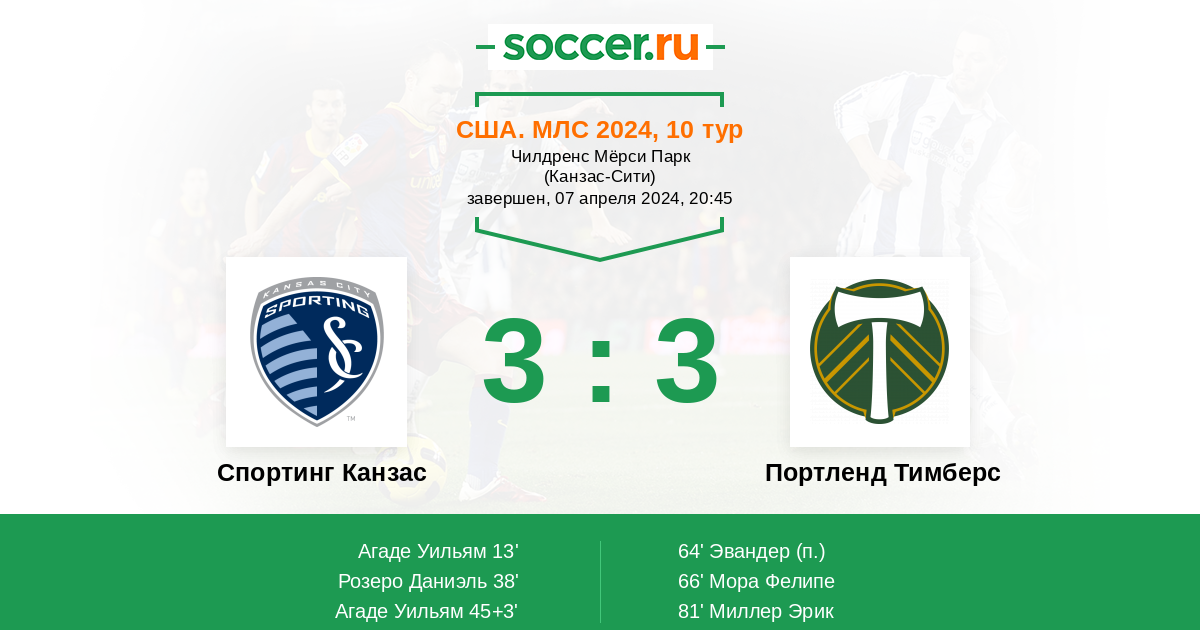 Протокол матча Спортинг Канзас против Портленд Тимберс