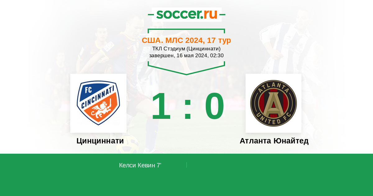 Протокол матча Цинциннати против Атланта Юнайтед