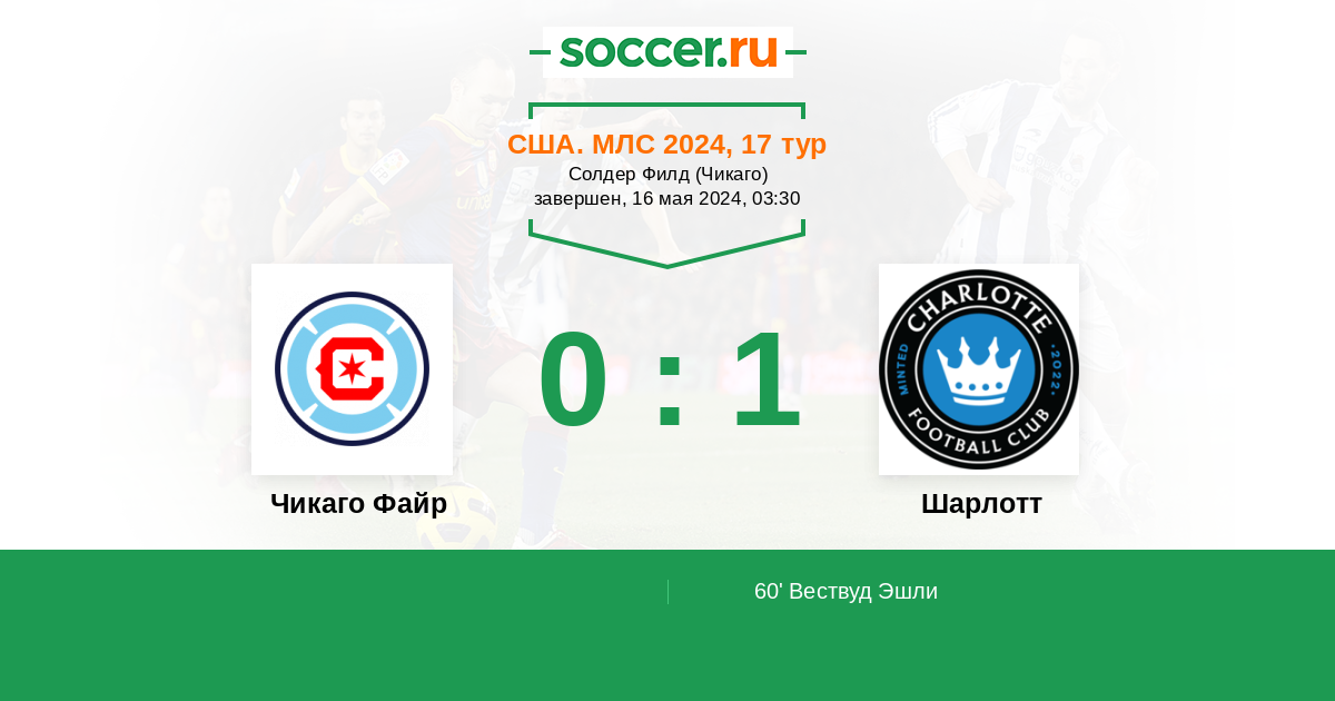 Протокол матча Чикаго Файр против Шарлотт