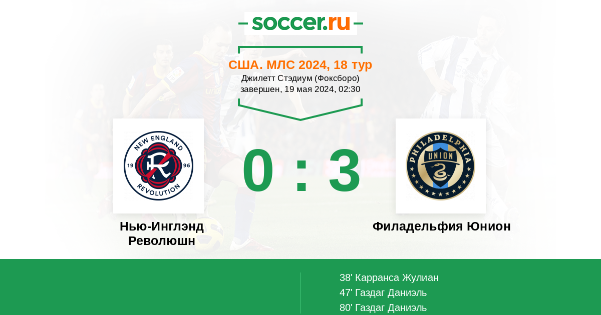 Протокол матча Нью-Инглэнд Революшн против Филадельфия Юнион