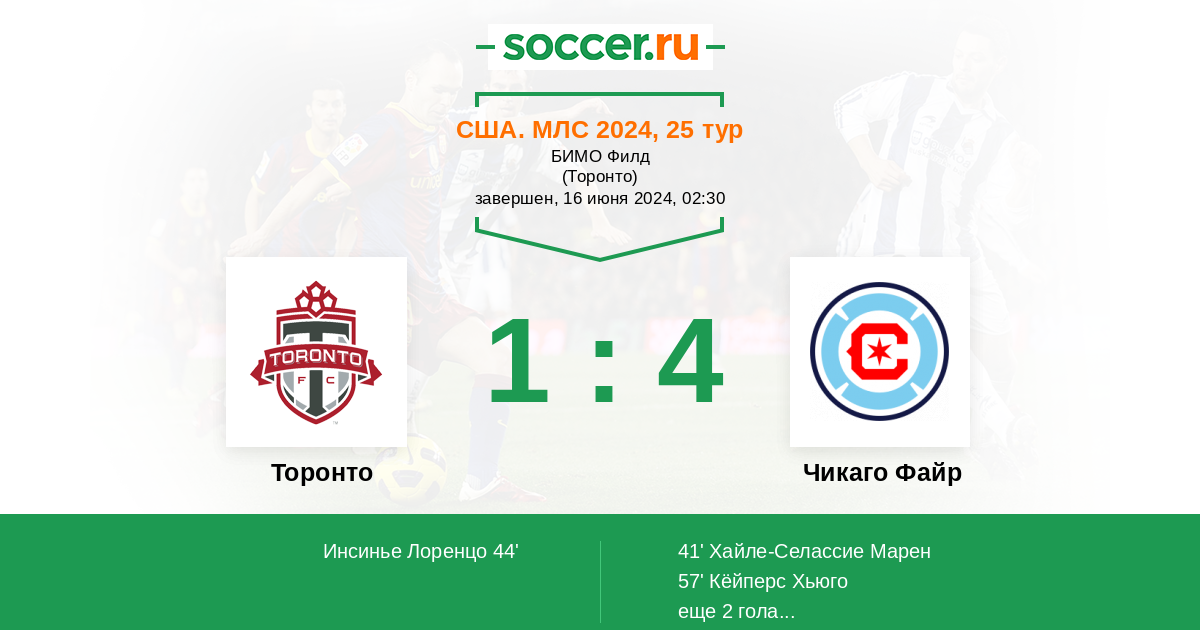 Протокол матча Торонто против Чикаго Файр