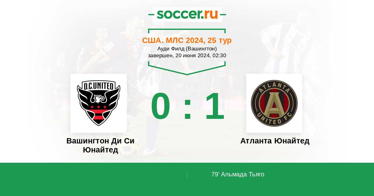 Протокол матча Вашингтон Ди Си Юнайтед против Атланта Юнайтед