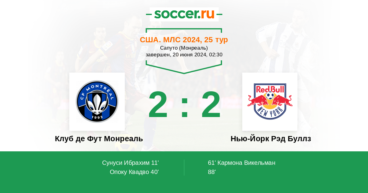 Протокол матча Клуб де Фут Монреаль против Нью-Йорк Рэд Буллз