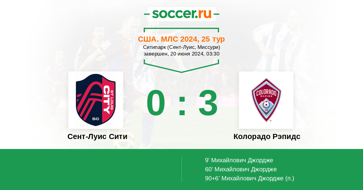 Протокол матча Сент-Луис Сити против Колорадо Рэпидс