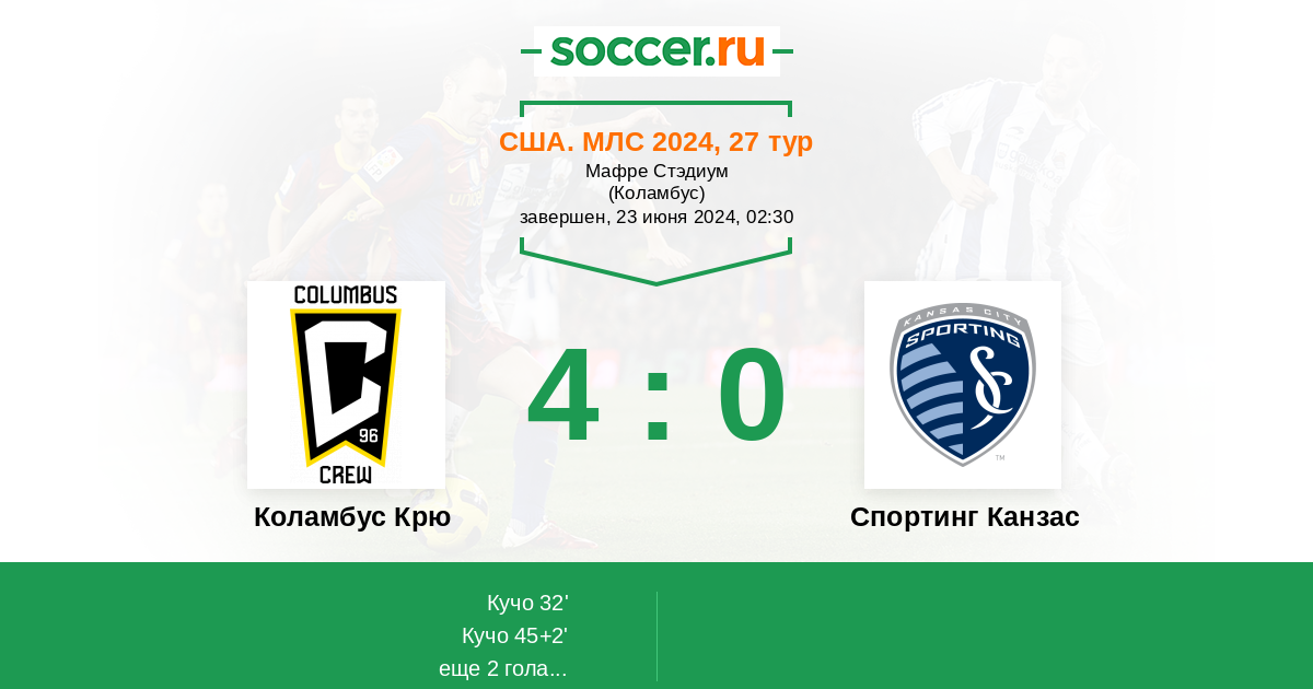 Протокол матча Коламбус Крю против Спортинг Канзас