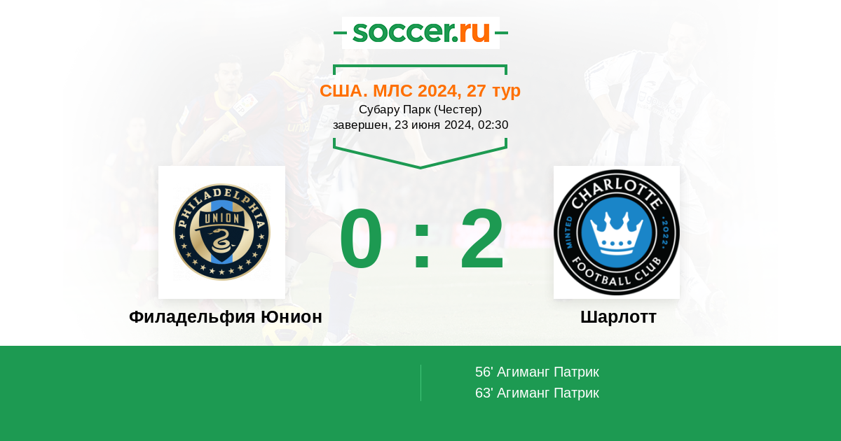 Протокол матча Филадельфия Юнион против Шарлотт
