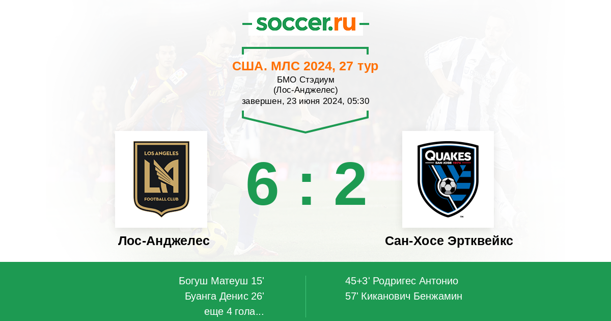Протокол матча Лос-Анджелес против Сан-Хосе Эртквейкс
