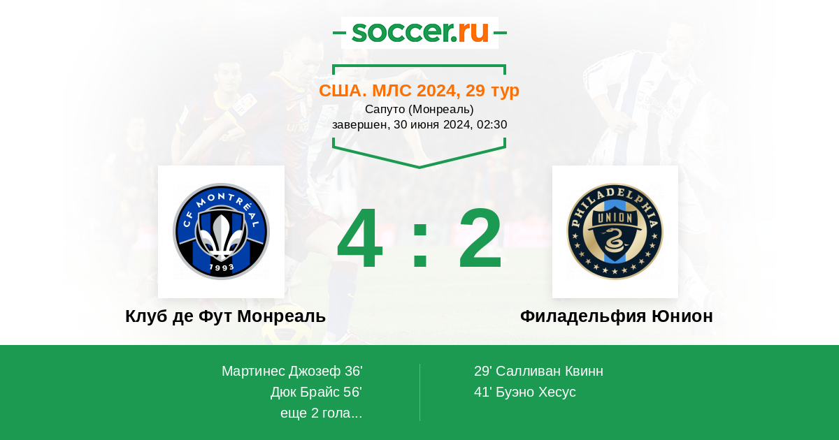 Протокол матча Клуб де Фут Монреаль против Филадельфия Юнион