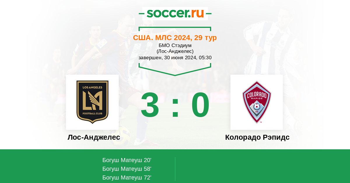 Протокол матча Лос-Анджелес против Колорадо Рэпидс