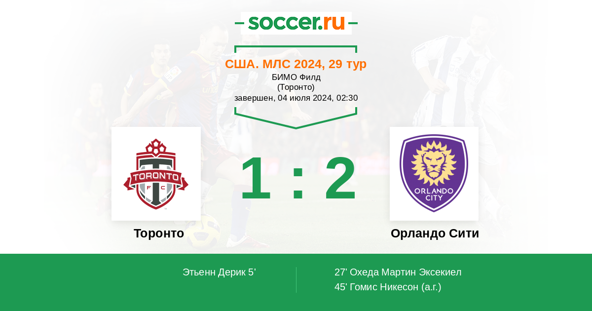 Протокол матча Торонто против Орландо Сити
