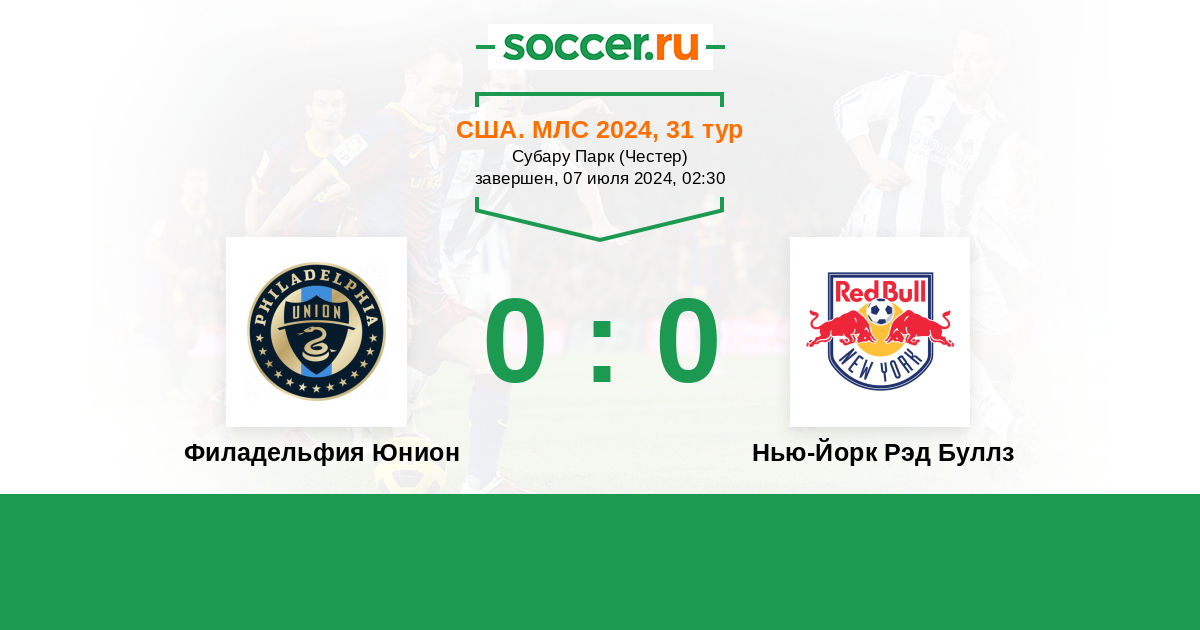 Протокол матча Филадельфия Юнион против Нью-Йорк Рэд Буллз