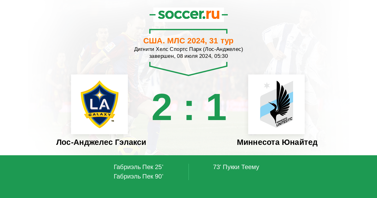 Протокол матча Лос-Анджелес Гэлакси против Миннесота Юнайтед