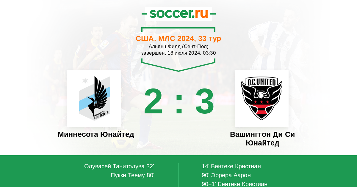 Протокол матча Миннесота Юнайтед против Вашингтон Ди Си Юнайтед