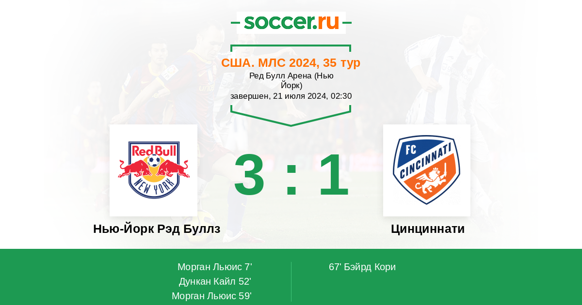 Протокол матча Нью-Йорк Рэд Буллз против Цинциннати
