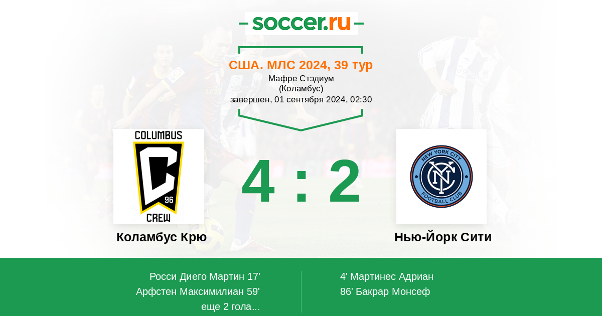 Протокол матча Коламбус Крю против Нью-Йорк Сити