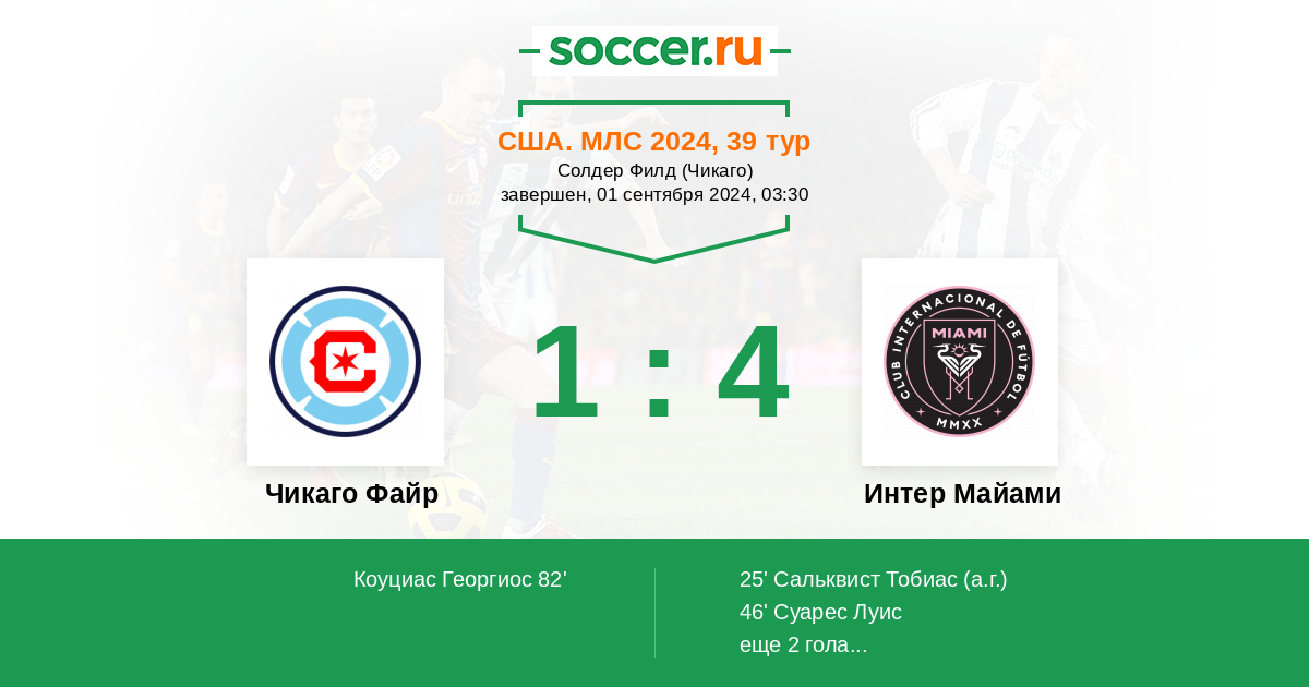 Протокол матча Чикаго Файр против Интер Майами