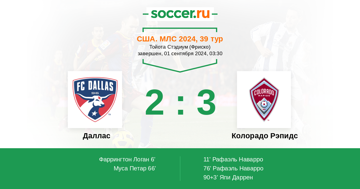Протокол матча Даллас против Колорадо Рэпидс