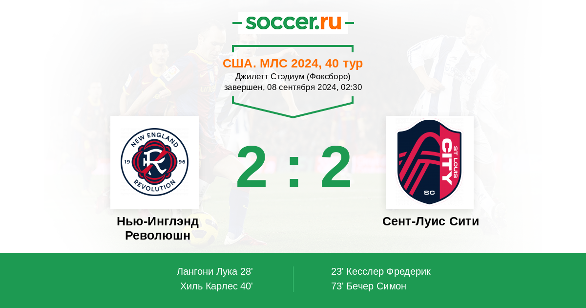 Протокол матча Нью-Инглэнд Революшн против Сент-Луис Сити