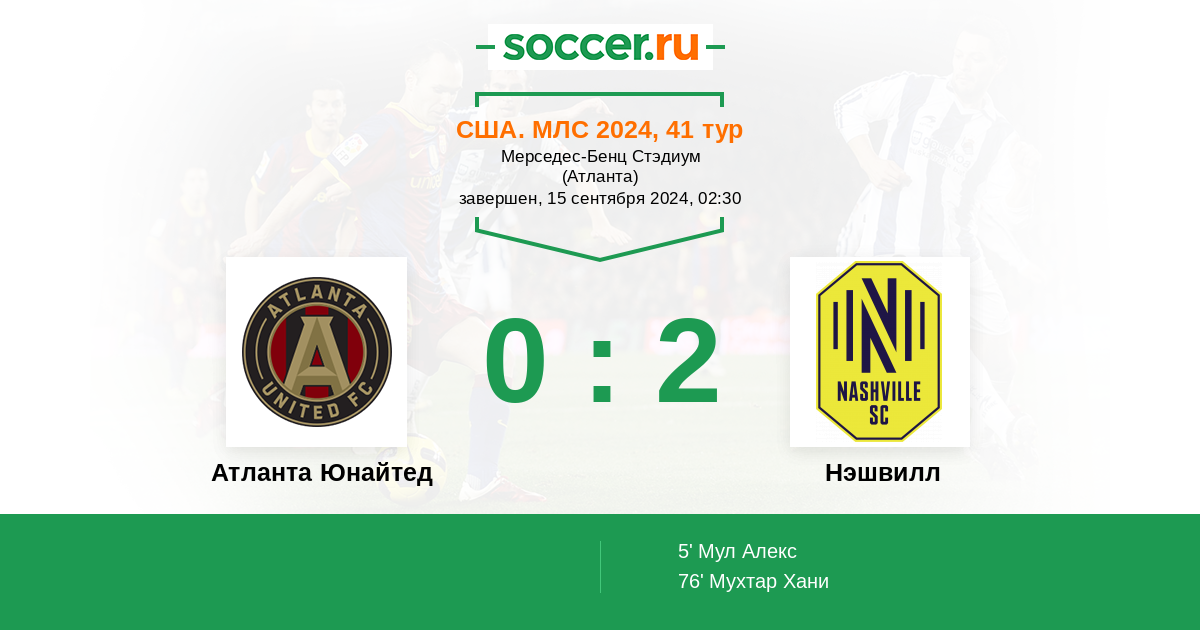 Протокол матча Атланта Юнайтед против Нэшвилл