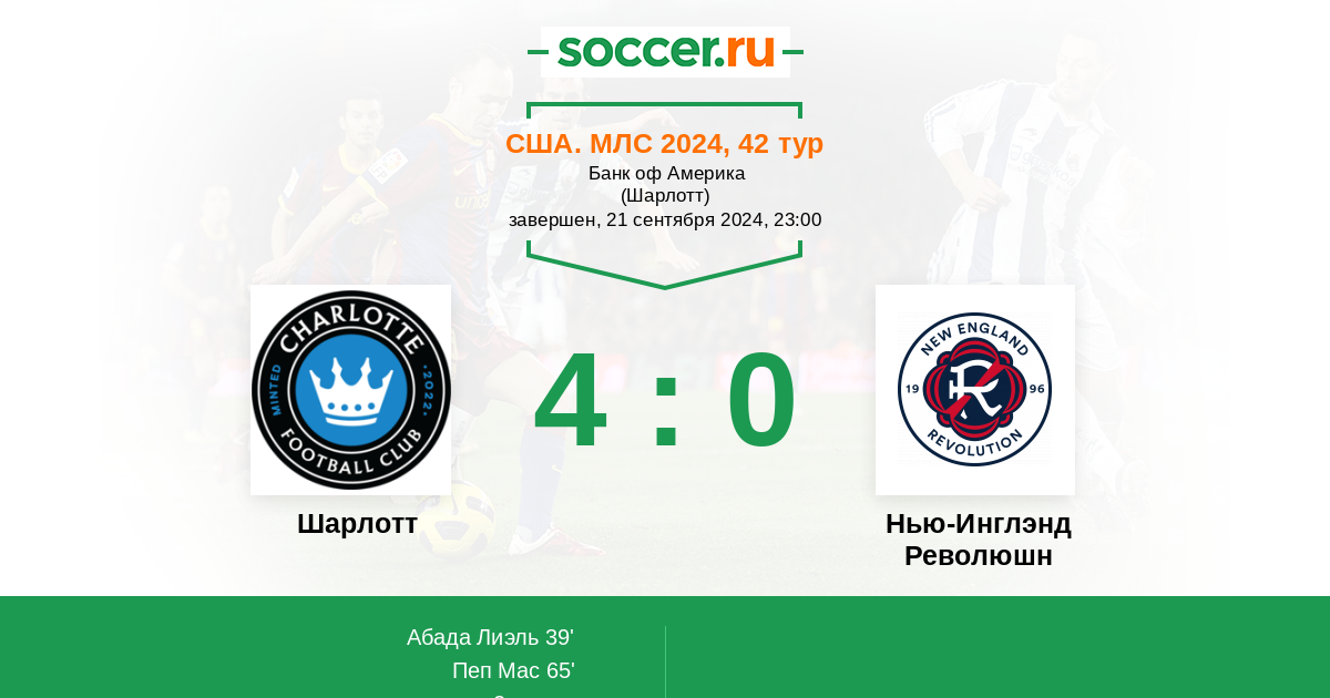 Протокол матча Шарлотт против Нью-Инглэнд Революшн