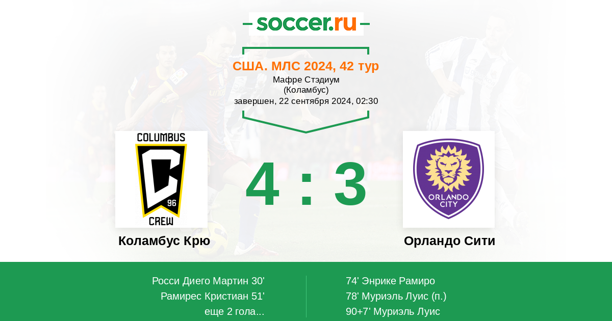 Протокол матча Коламбус Крю против Орландо Сити