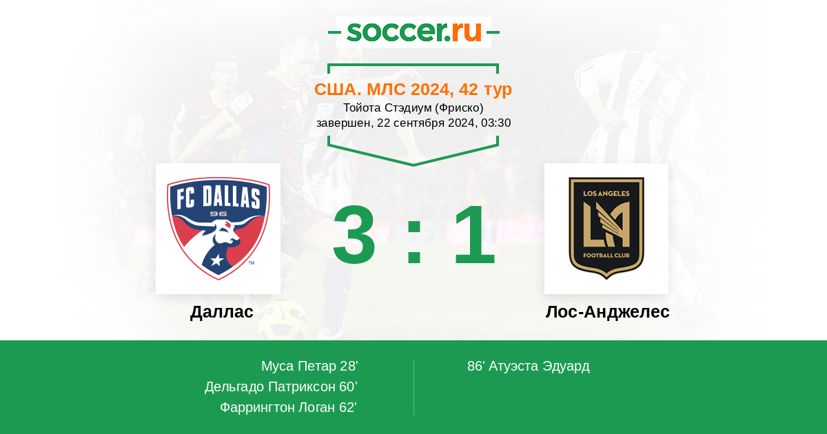 Протокол матча Даллас против Лос-Анджелес