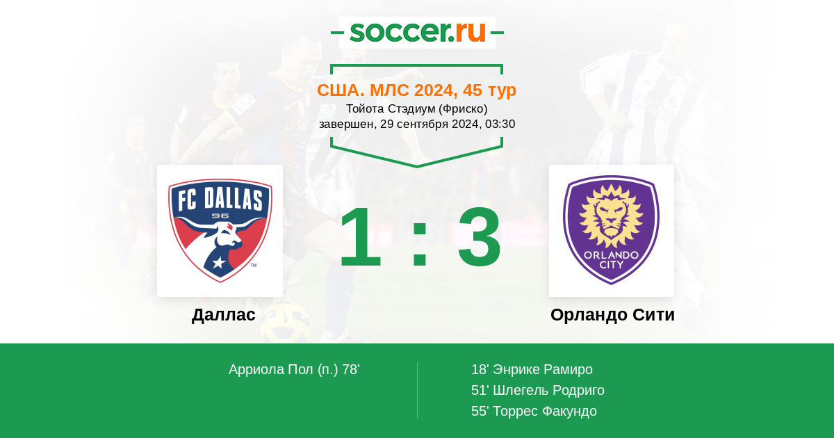 Протокол матча Даллас против Орландо Сити