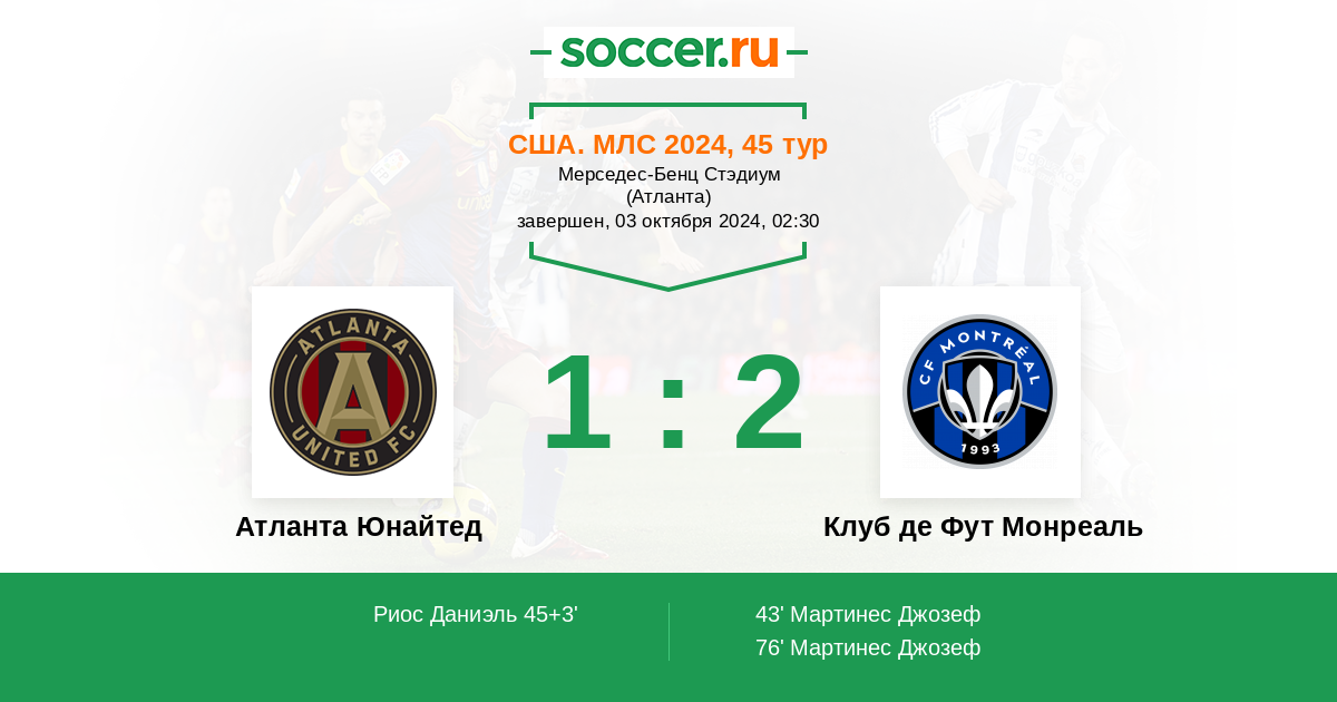 Протокол матча Атланта Юнайтед против Клуб де Фут Монреаль