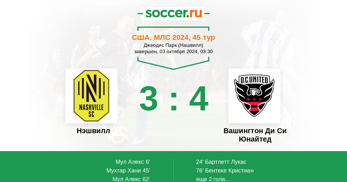 Протокол матча Нэшвилл против Вашингтон Ди Си Юнайтед