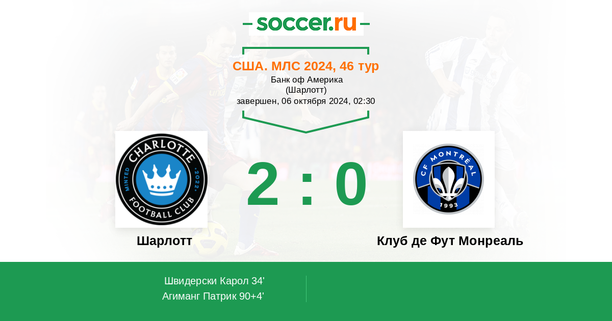 Протокол матча Шарлотт против Клуб де Фут Монреаль