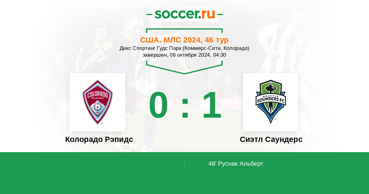 Протокол матча Колорадо Рэпидс против Сиэтл Саундерс