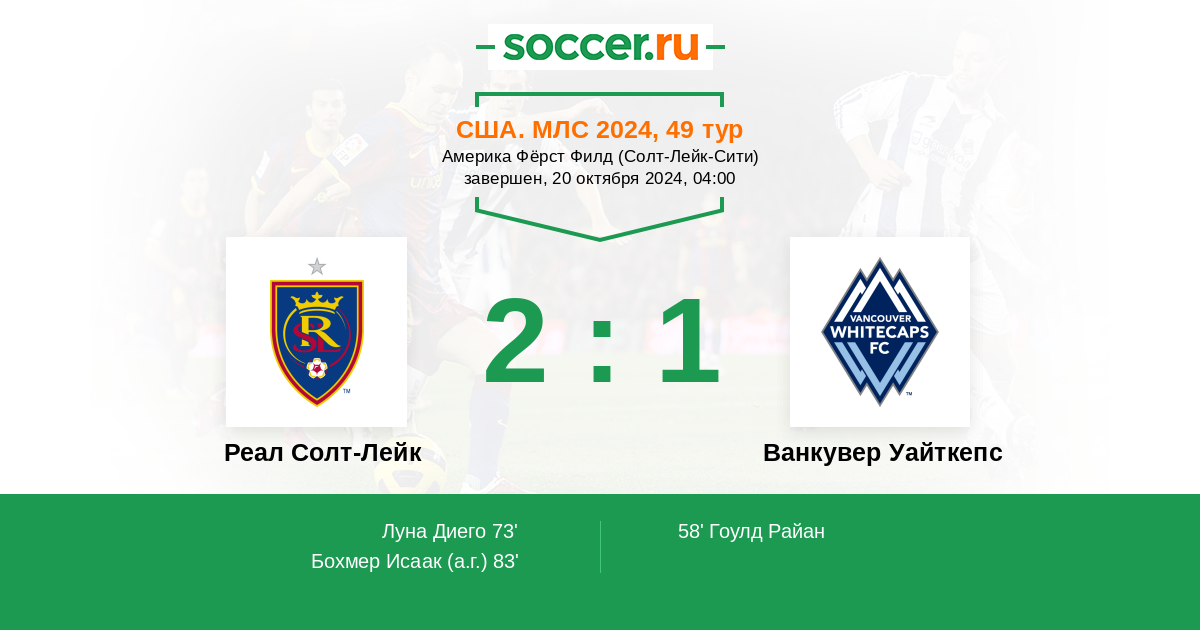 Протокол матча Реал Солт-Лейк против Ванкувер Уайткепс