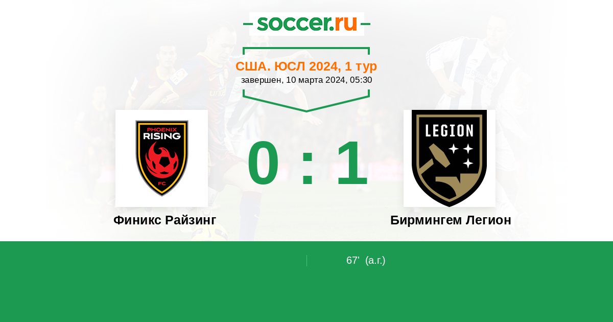 Протокол матча Финикс Райзинг против Бирмингем Легион