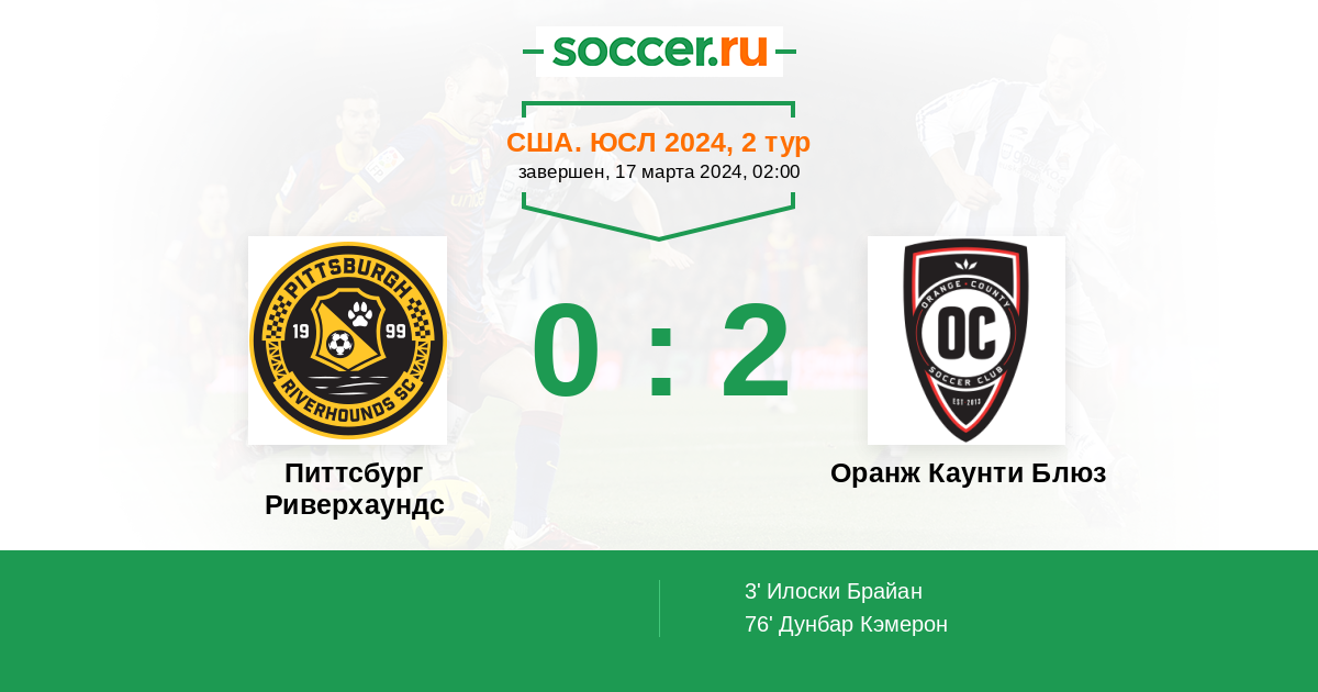 Протокол матча Питтсбург Риверхаундс против Оранж Каунти Блюз